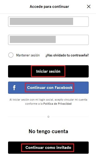 En este caso, seguimos con la compra haciendo clic en ‘Continuar como invitado’.