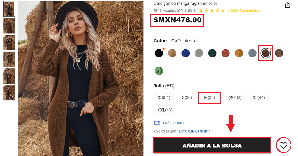 En este caso, seleccionamos: ‘Ropa’ y luego ‘Suéters y Cárdigans’.